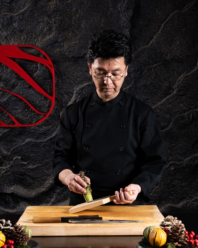 He perfected his art at Michelin-starred Ristorante Angelo in Italy, under legendary Chef Angelo Paracucchi, known as the “King of Pasta.” In France, he also apprenticed at Hotel Seiyo Ginza, working his way through every station of its grand dining room under world-class masters. In Japan, he trained in multiple kitchens, mastering traditional Japanese techniques and the principles of omakase dining. He later served as Head Chef at CP Restaurant for 15 years, where he created a “one-of-a-kind” experience, never serving the same menu twice to any guest. Most recently, he led a pioneering aged beef restaurant in Roppongi, developing unique methods to enhance flavor and texture.
